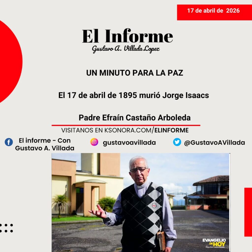 UN MINUTO PARA LA PAZ El 17 de abril de 1895 murió Jorge Isaacs Padre Efraín Castaño Arboleda