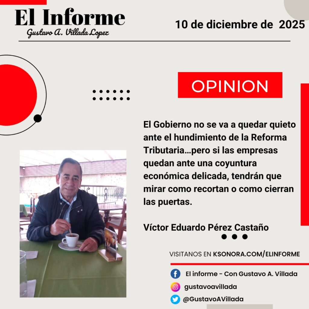El Gobierno no se va a quedar quieto ante el hundimiento de la Reforma Tributaria…pero si las empresas quedan ante una coyuntura económica delicada, tendrán que mirar como recortan o como cierran las puertas. Víctor Eduardo Pérez Castaño