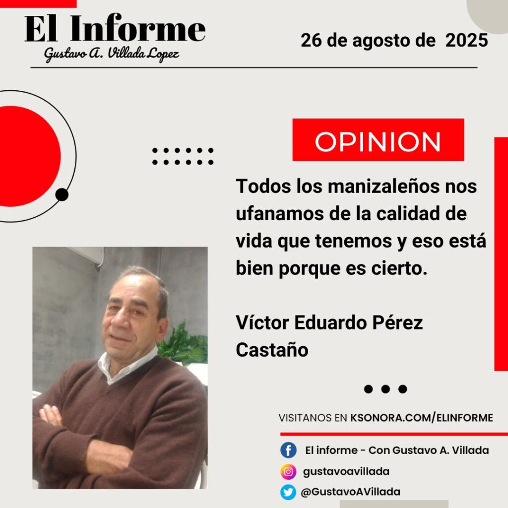 Todos los manizaleños nos ufanamos de la calidad de vida que tenemos y eso está bien porque es cierto. Víctor Eduardo Pérez Castaño