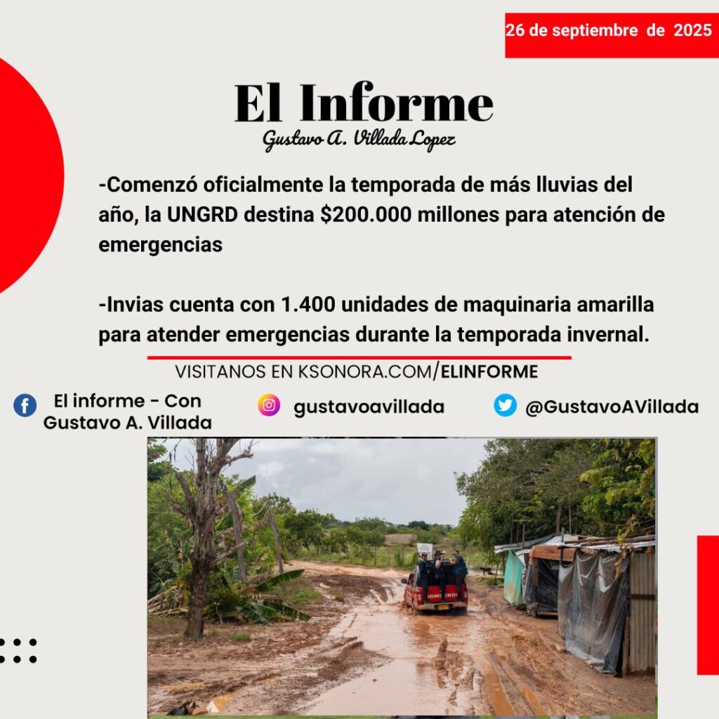 -Comenzó oficialmente la temporada de más lluvias del año, la UNGRD destina $200.000 millones para atención de emergencias