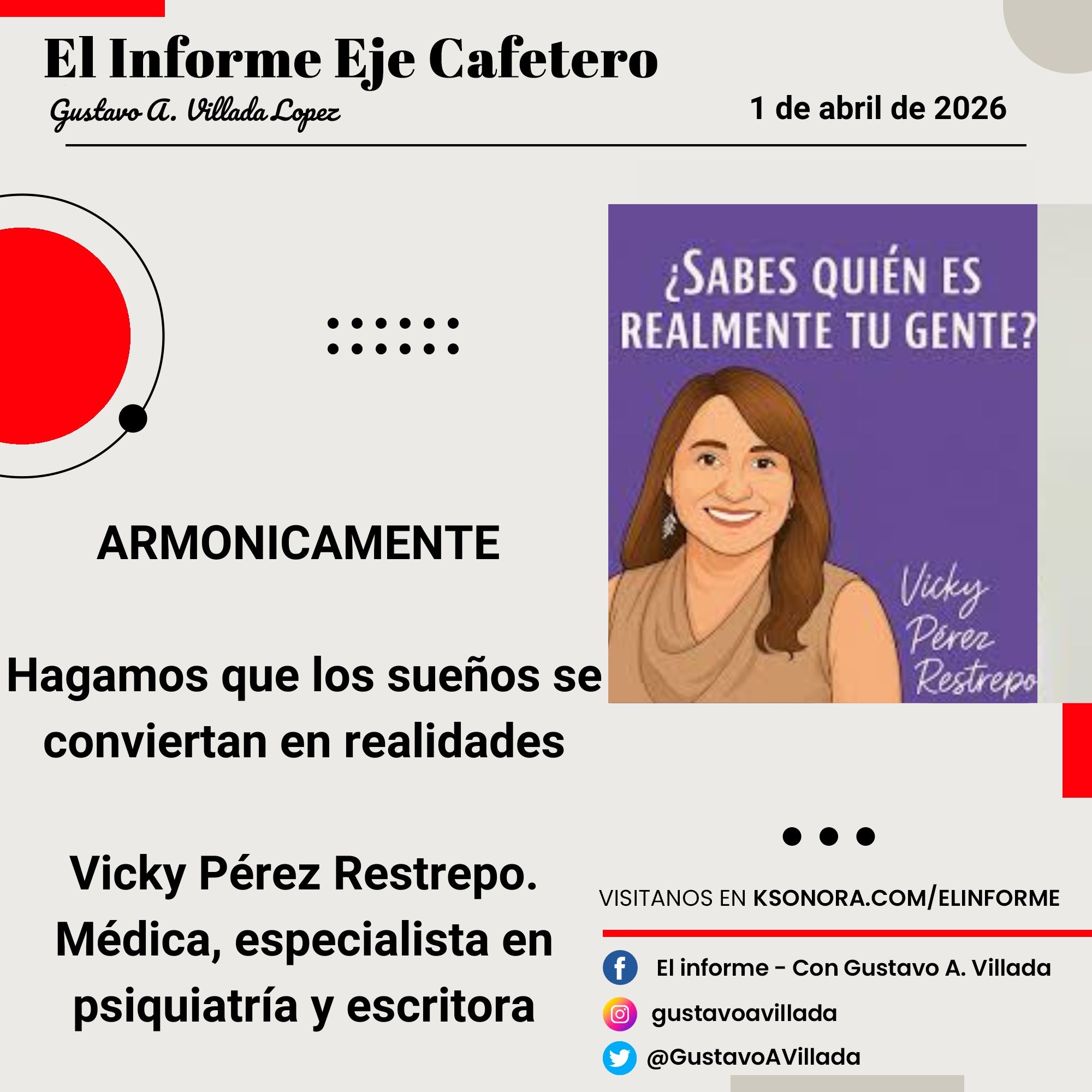 ARMONICAMENTE Hagamos que los sueños se conviertan en realidades Vicky Pérez Restrepo. Médica, especialista en psiquiatría y escritora